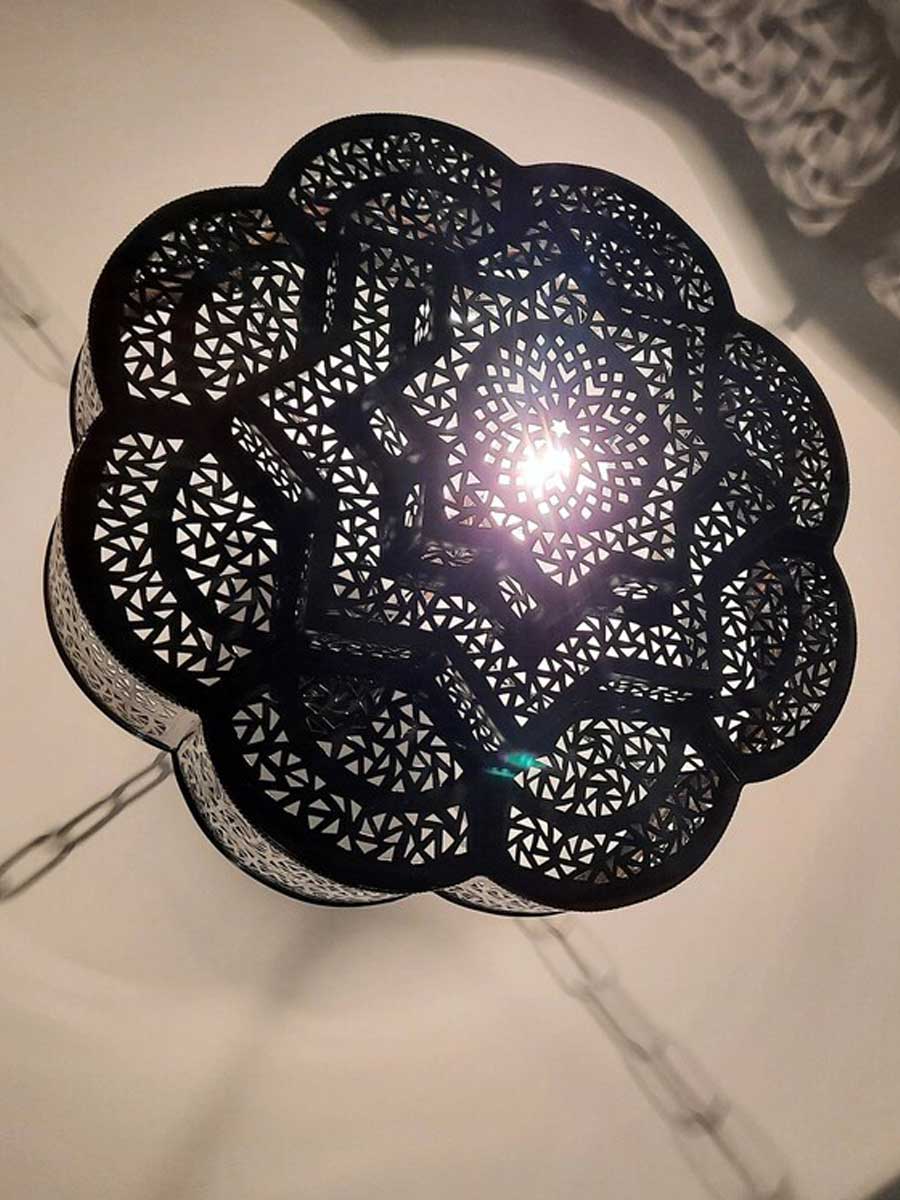 Un lustre marocain fabriqué à la main avec une étoile découpée rehausse la décoration de la cuisine. Nos pièces uniques sont méticuleusement réalisées par des artisans, garantissant une qualité supérieure. Parfait pour créer une ambiance marocaine originale, chaque lustre témoigne d'un savoir-faire de qualité, conçu pour rehausser l'esthétique de votre ferme.